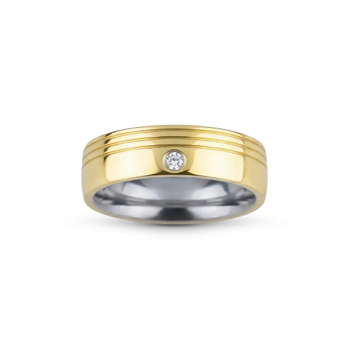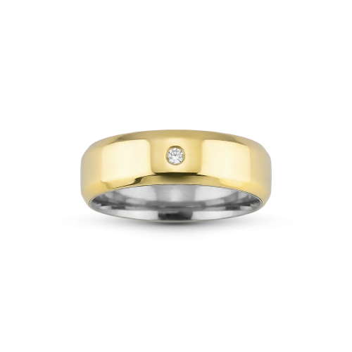 Aliança de Moeda 18k Chanfrada 6mm com Zircônia