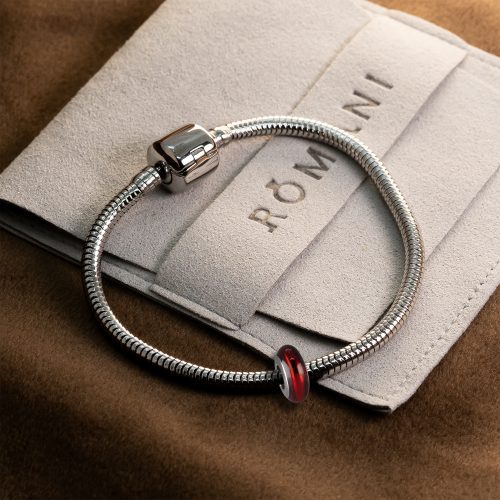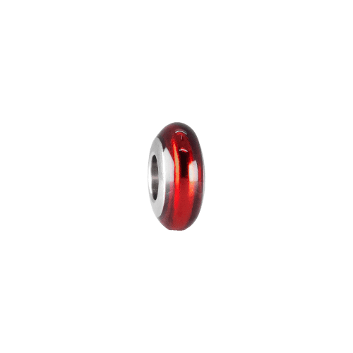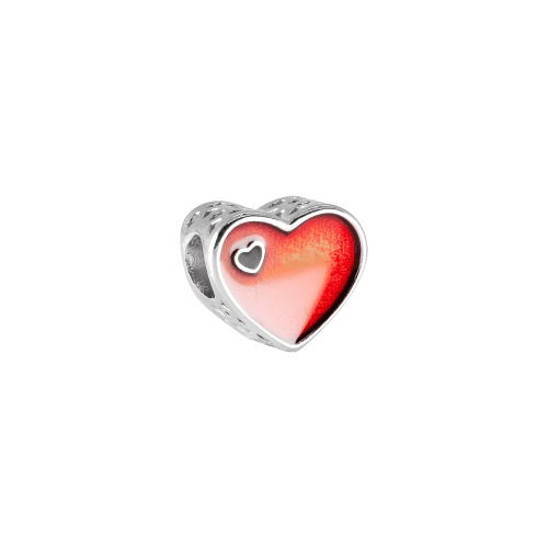 Berloque Espaçador Prata Coração Resinado Vermelho