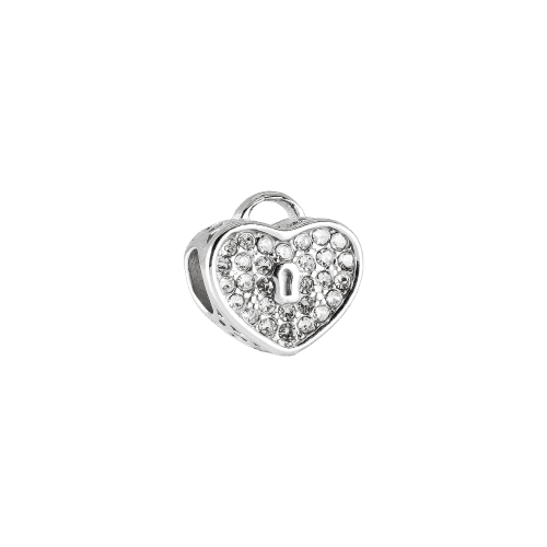 Berloque Espaçador Prata Coração Fechadura Cravejado