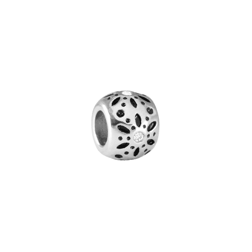 Berloque Espaçador Prata Charm Flor de Zircônia