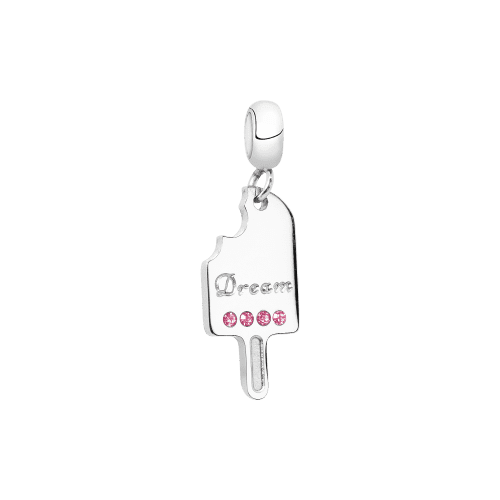 Berloque Pingente Prata Picolé Dream Zircônia Rosa