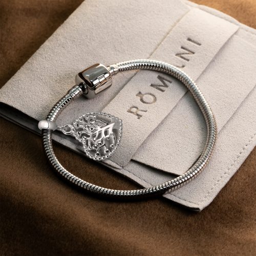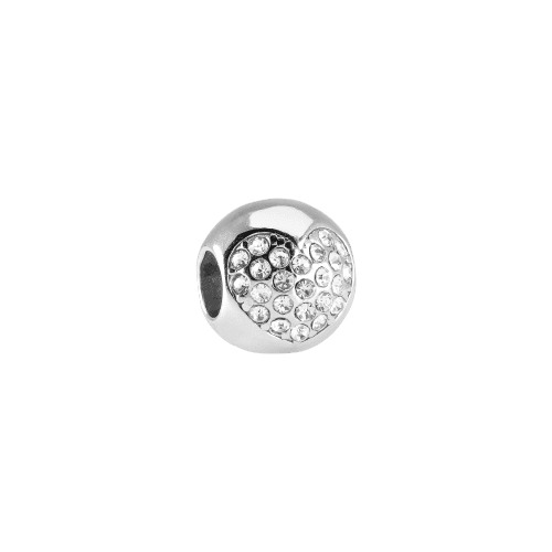 Berloque Espaçador Prata Esfera Coração Cravejado