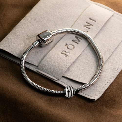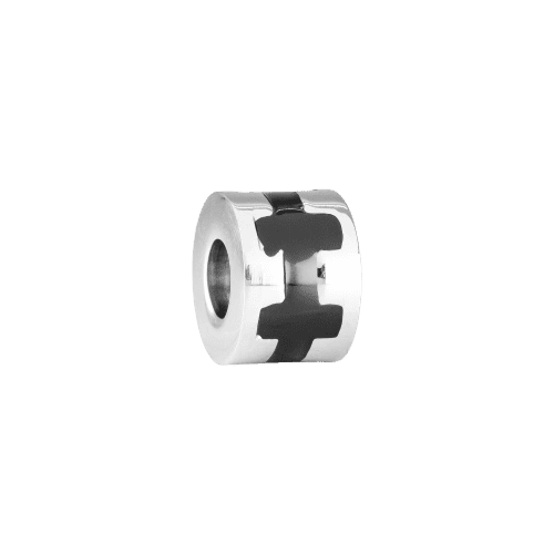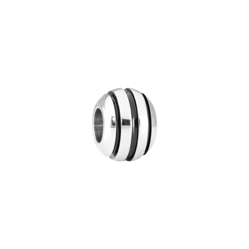 Berloque Espaçador Prata Esfera Linhas Pretas