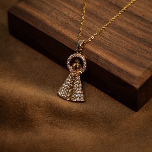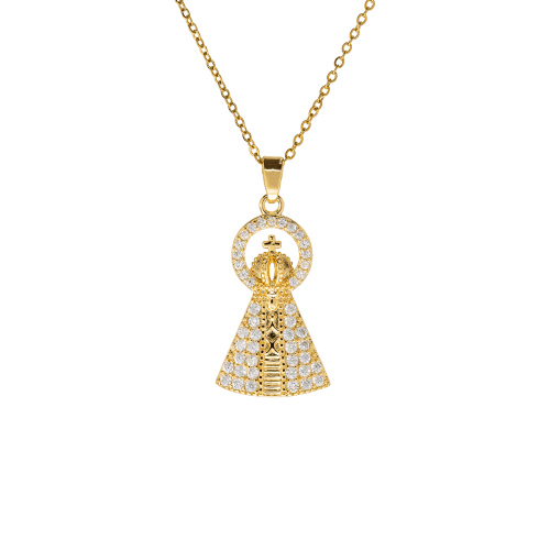 Colar Pingente Nossa Senhora Cravejado Banhado a Ouro 24k