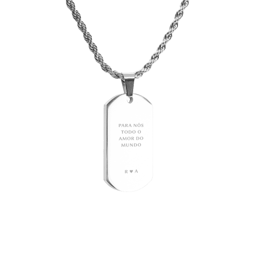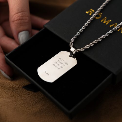 Colar Dog Tag Corrente Trançada Personalizado Prata