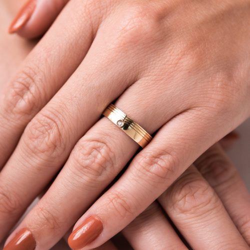 Aliança de Moeda 18k Rischi 5mm com Zircônia