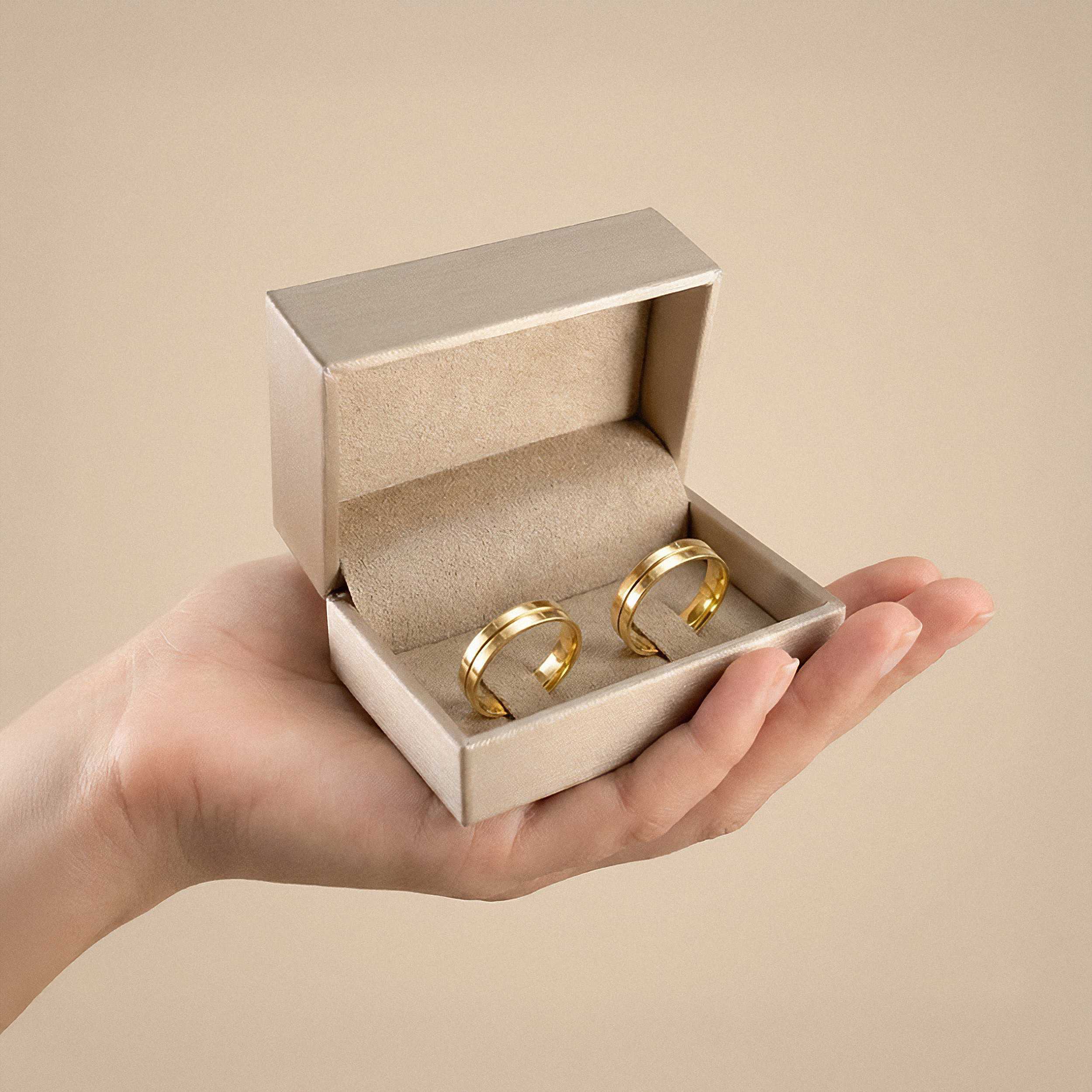 Caixinha Porta Aliança Courino Acolchoada Champagne