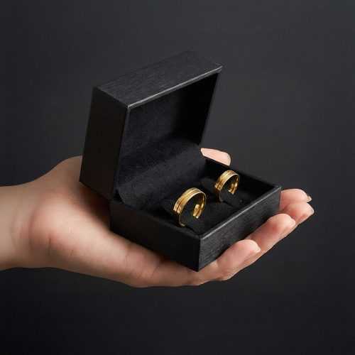 Caixinha Porta Aliança Courino Acolchoada Preta