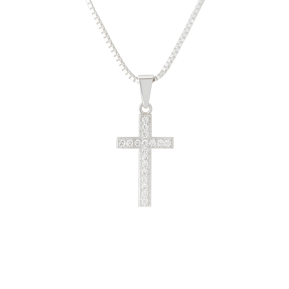 Colar Crucifixo Cravejado Banhado a Prata 925