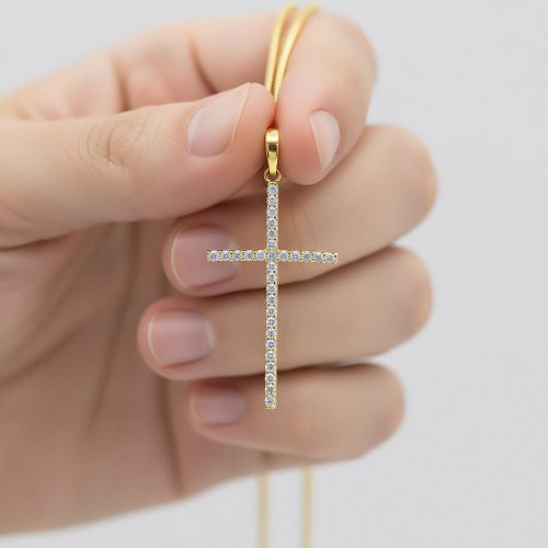 Colar Crucifixo Slim Cravejado Banhado a Ouro 18k