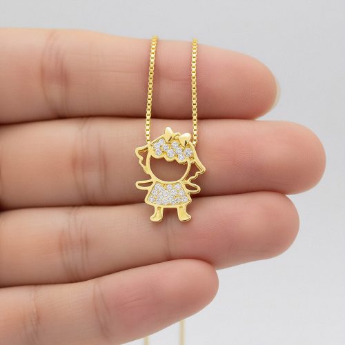Colar Família Menina Cravejada Banhado a Ouro 18k