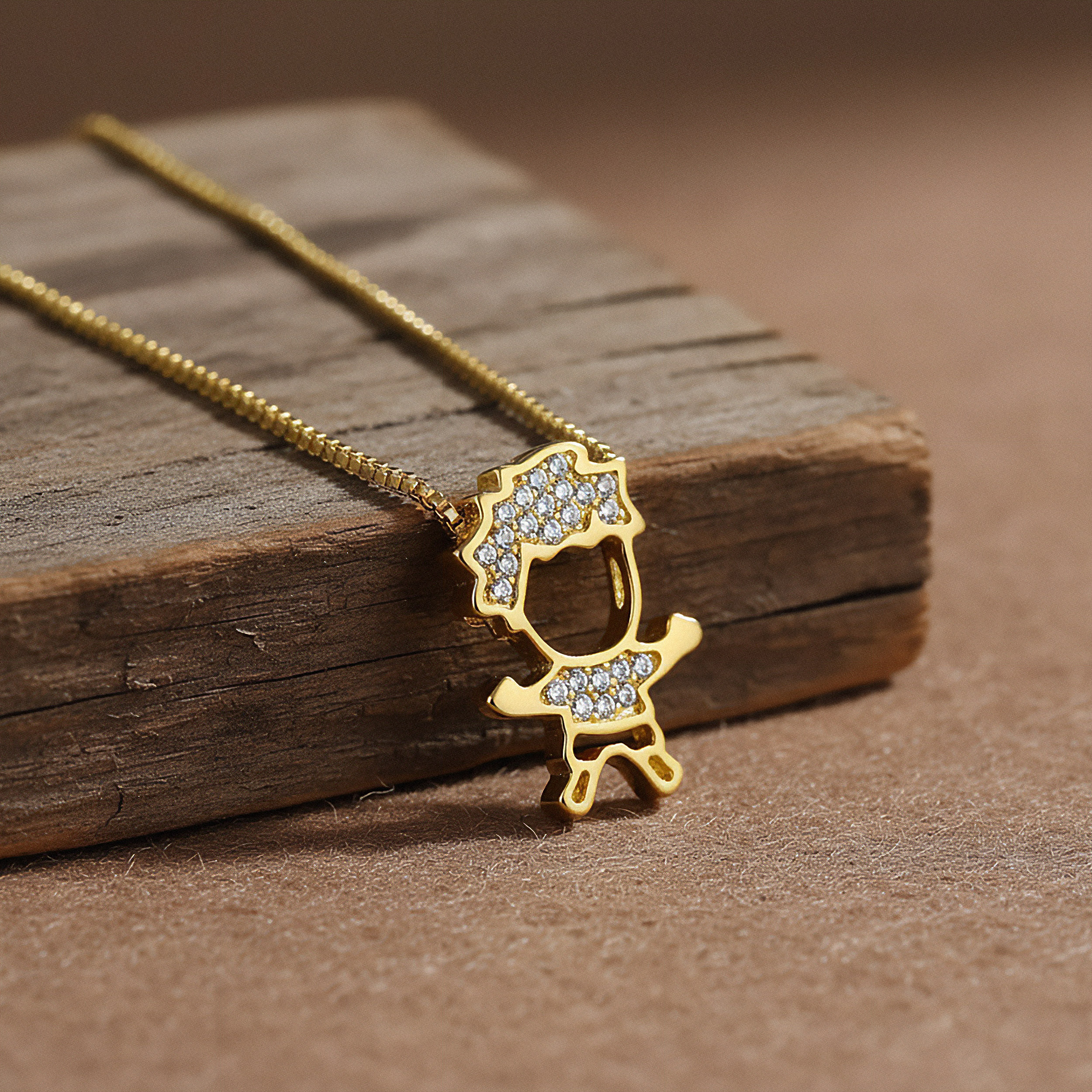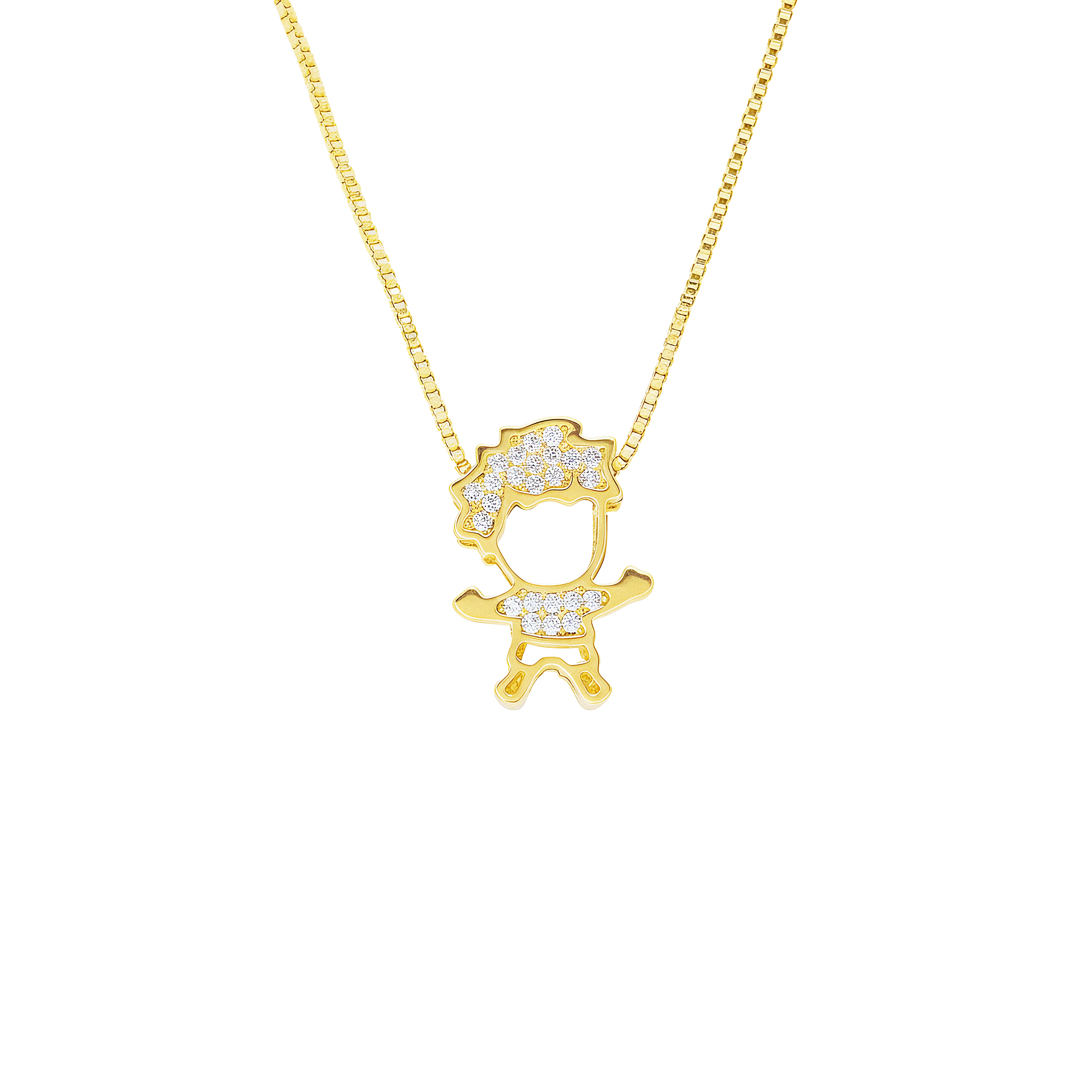 Colar Família Menino Cravejado Banhado a Ouro 18k