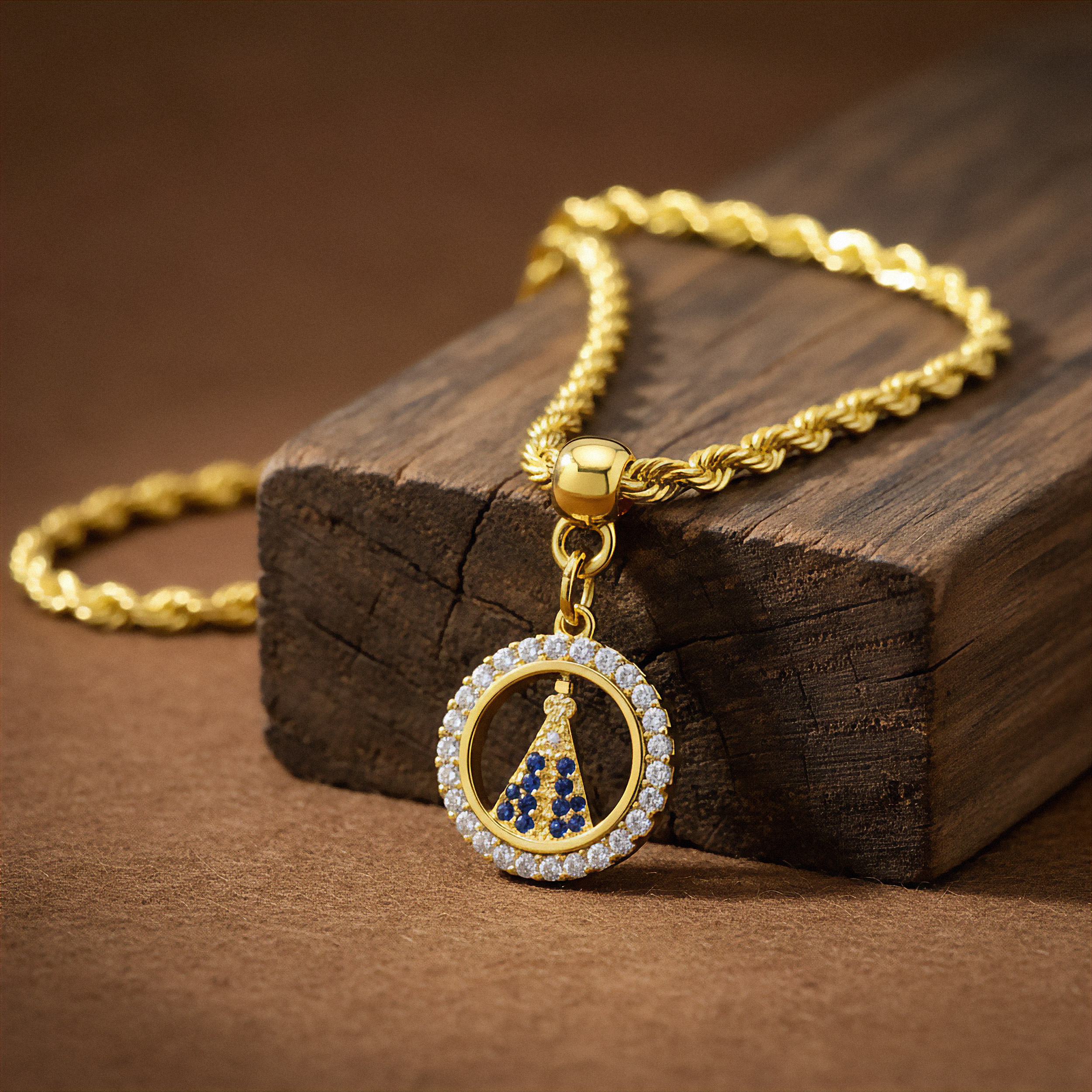 Colar Medalha Nossa Senhora Banhado a Ouro 18k