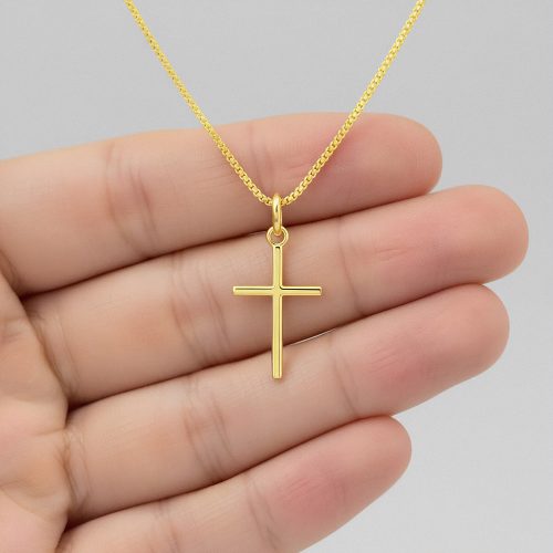 Colar Mini Crucifixo Slim Banhado a Ouro 18k