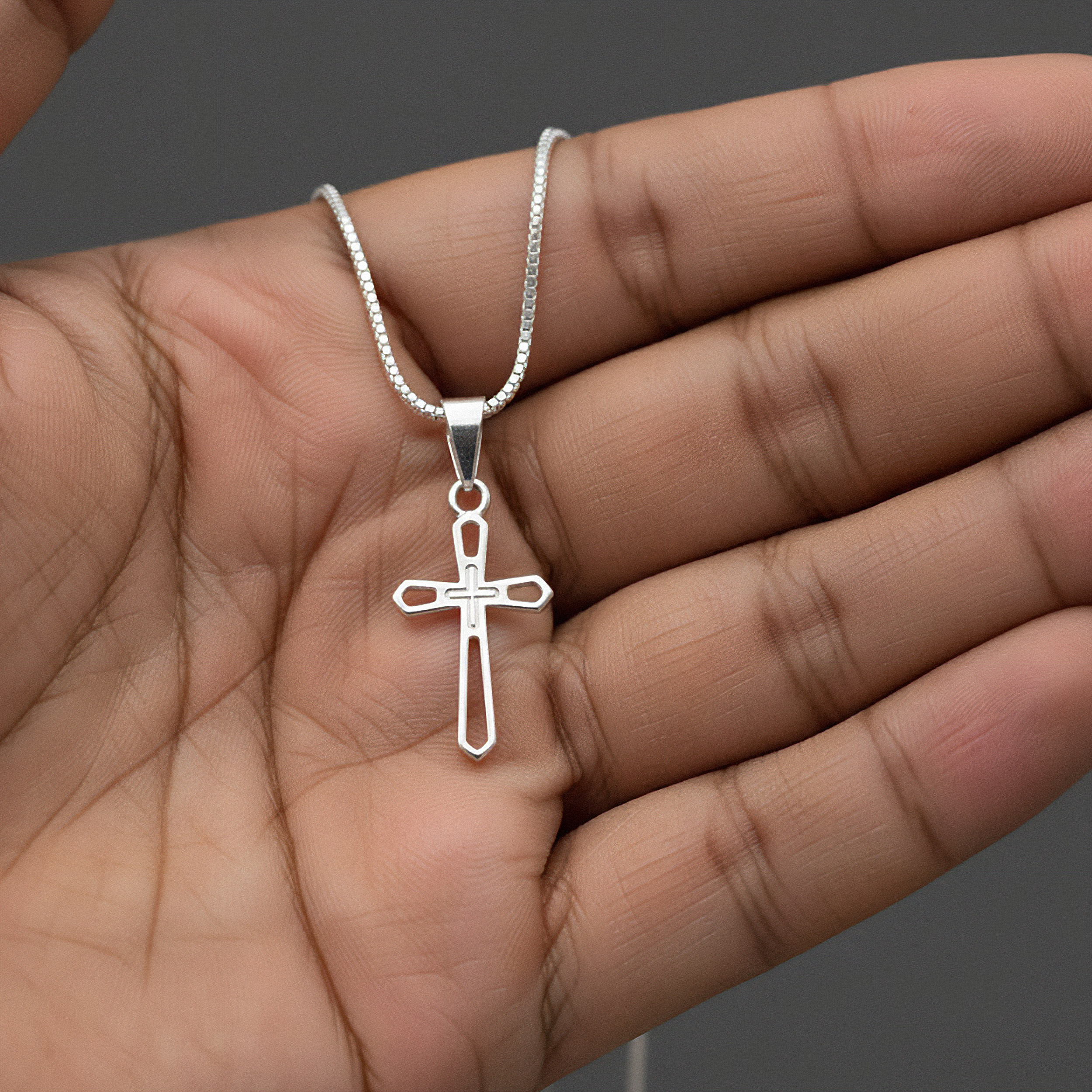 Colar Mini Crucifixo Vazado Banhado a Prata 925