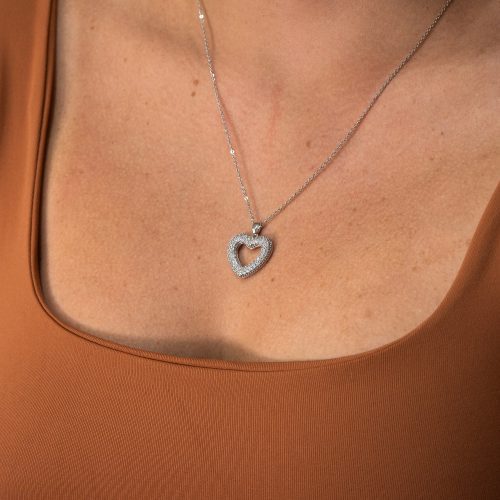 Colar Pingente Coração Bold Cravejado Aço Prata