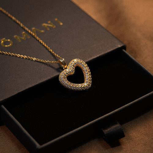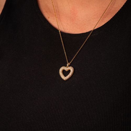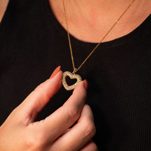 Colar Pingente Coração Bold Cravejado Banhado a Ouro 24k