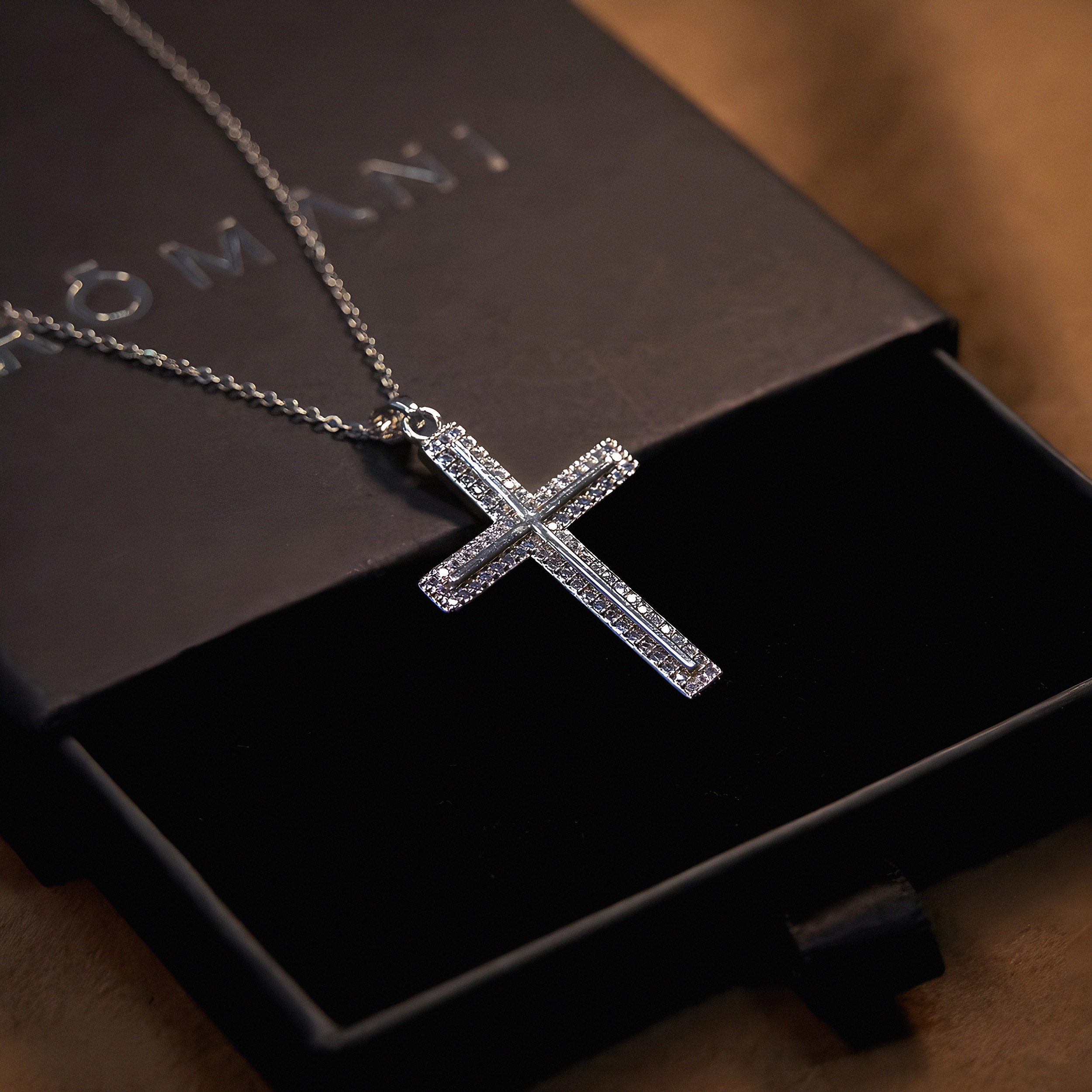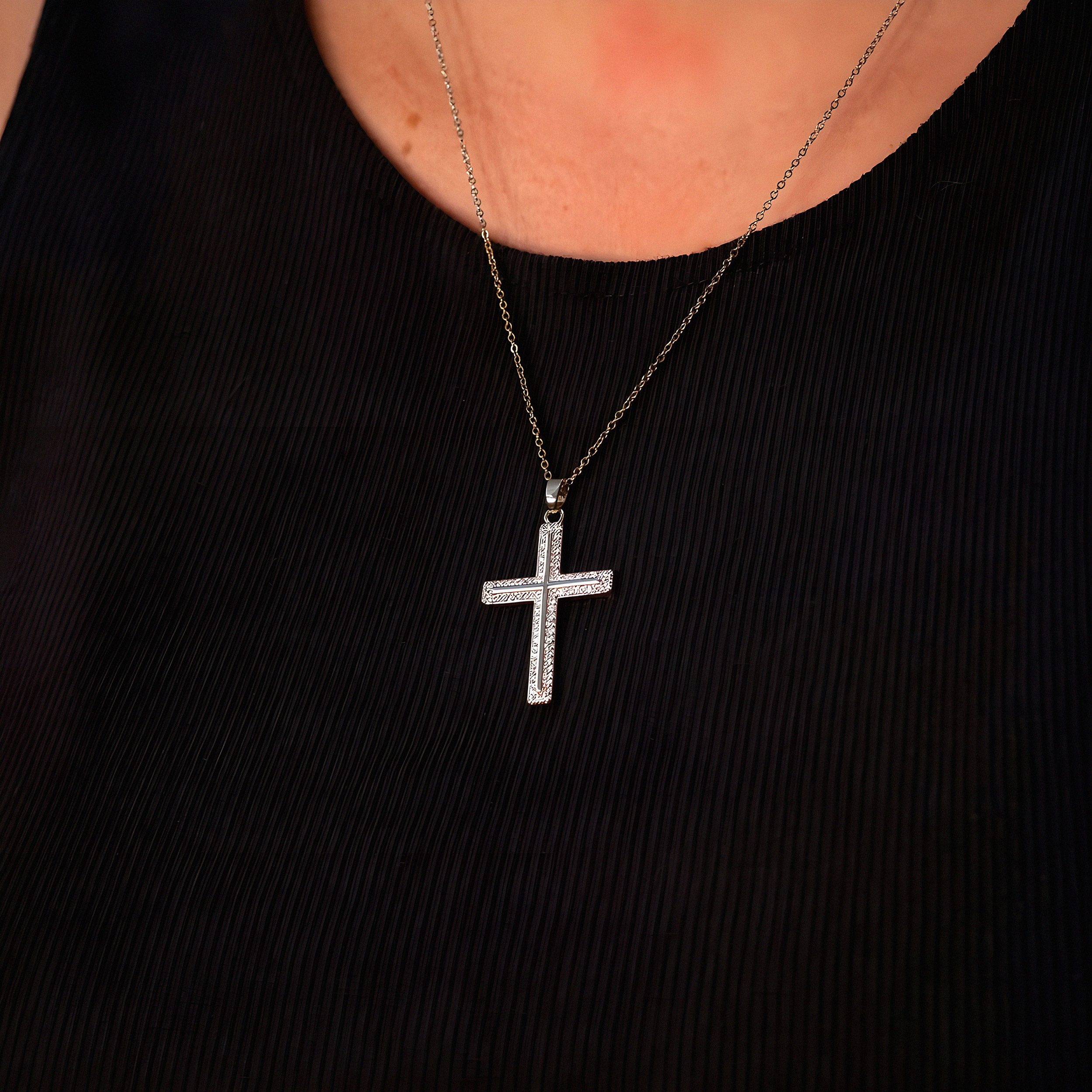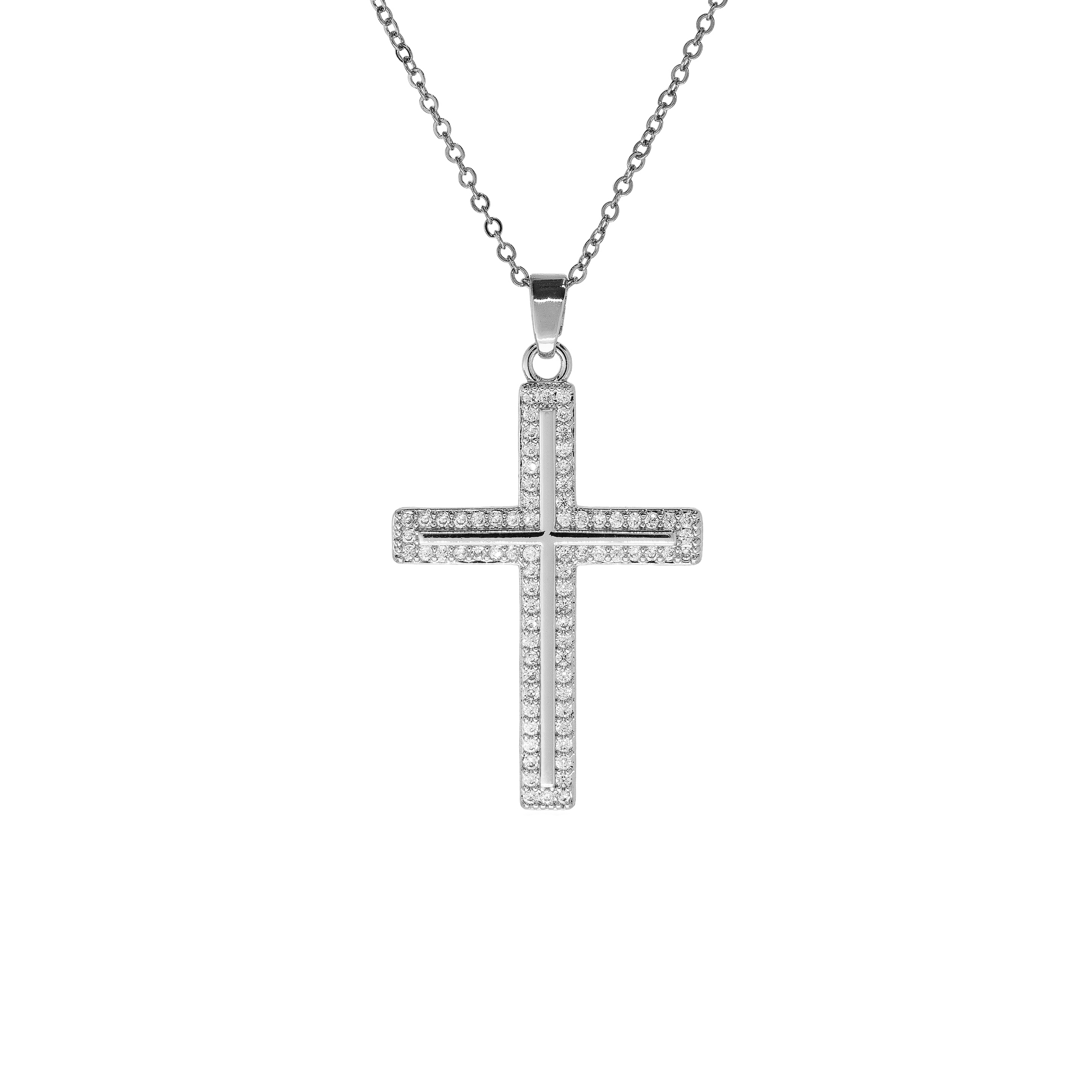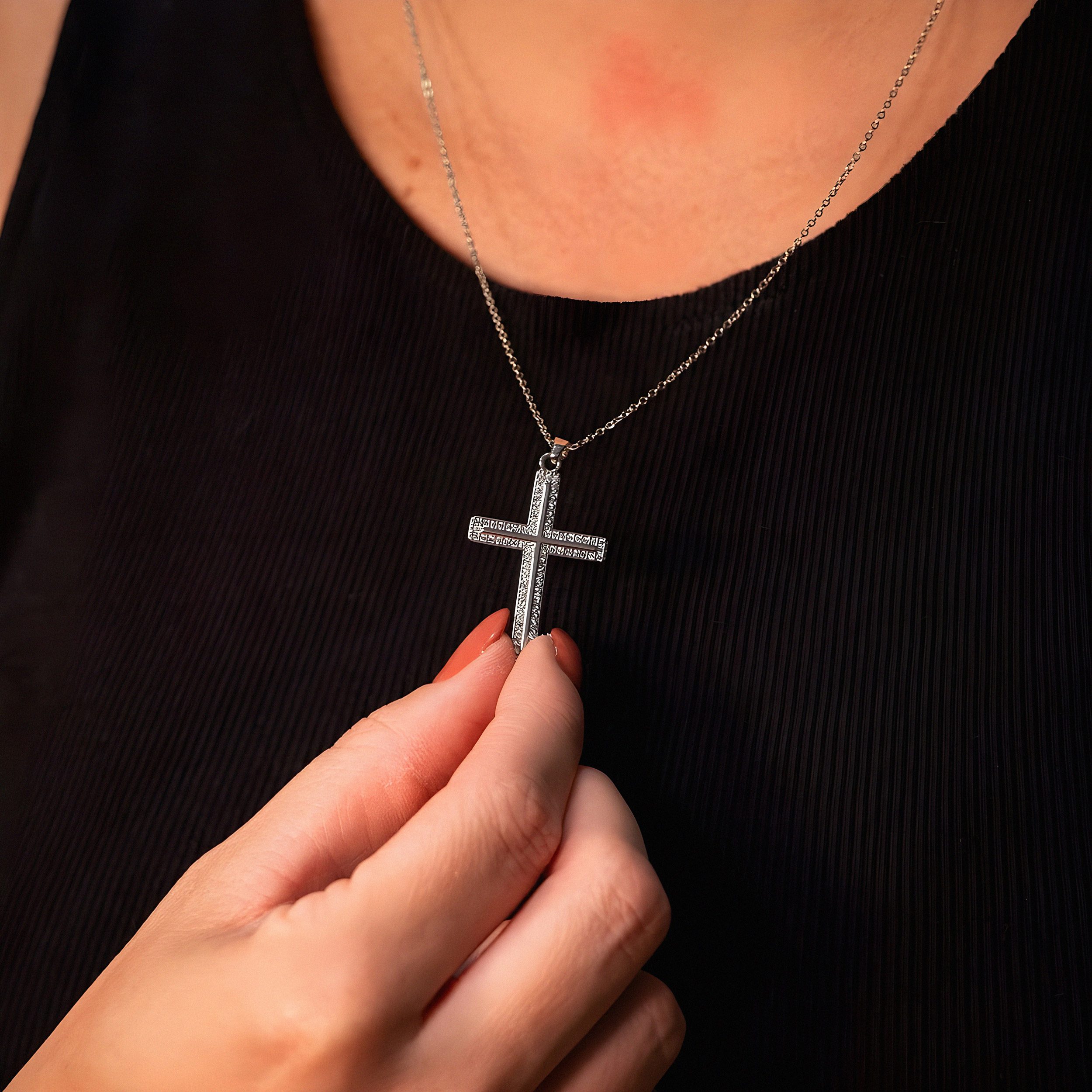 Colar Pingente Crucifixo Cravejado Aço Prata