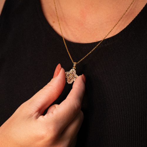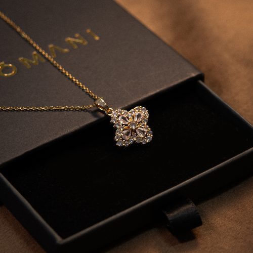 Colar Pingente Flor Brilhante Banhado a Ouro 24k