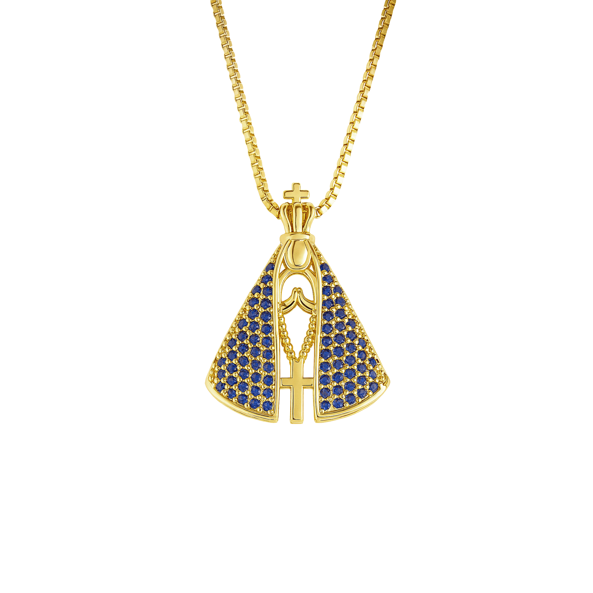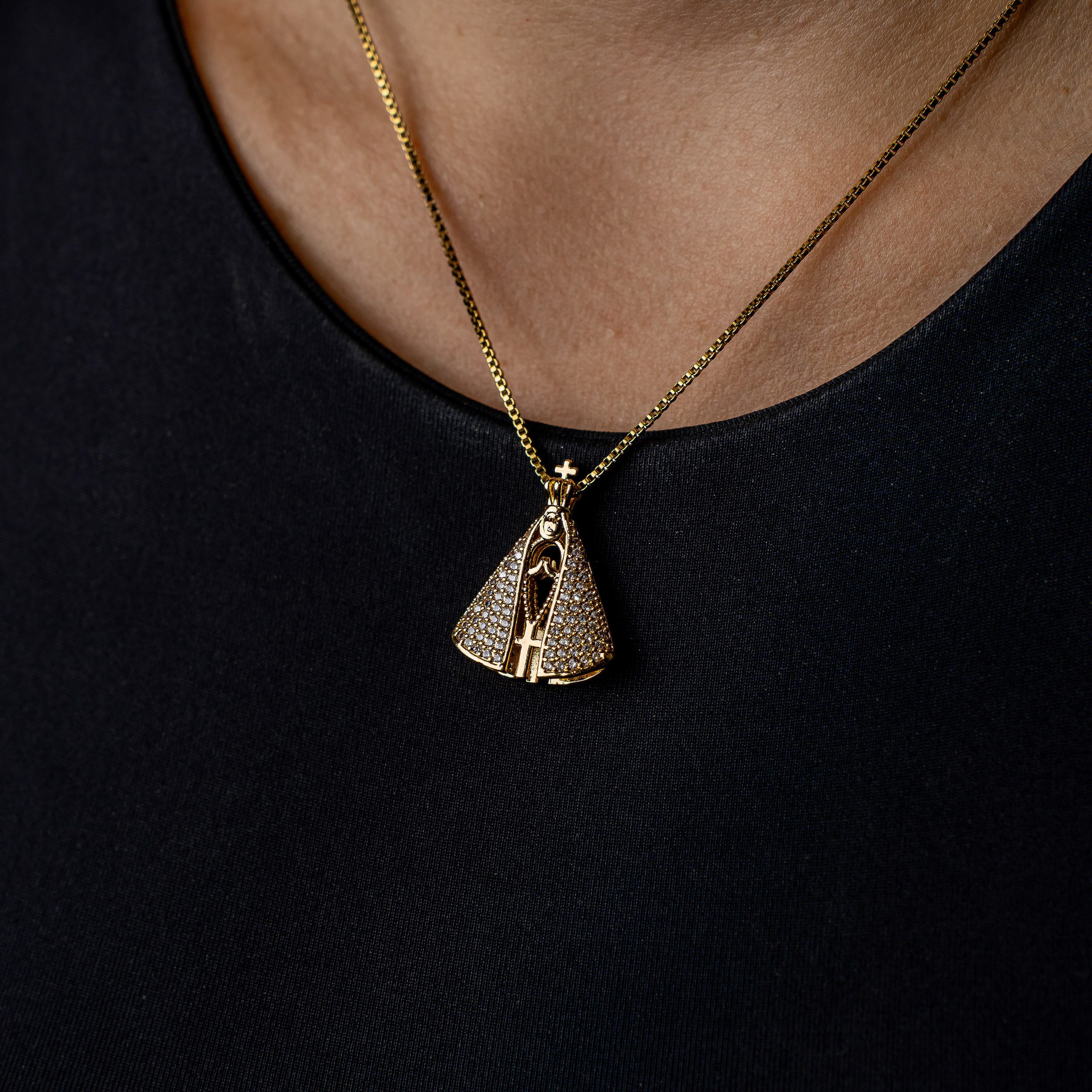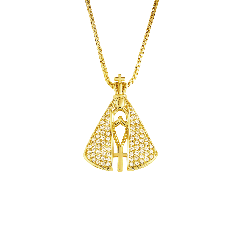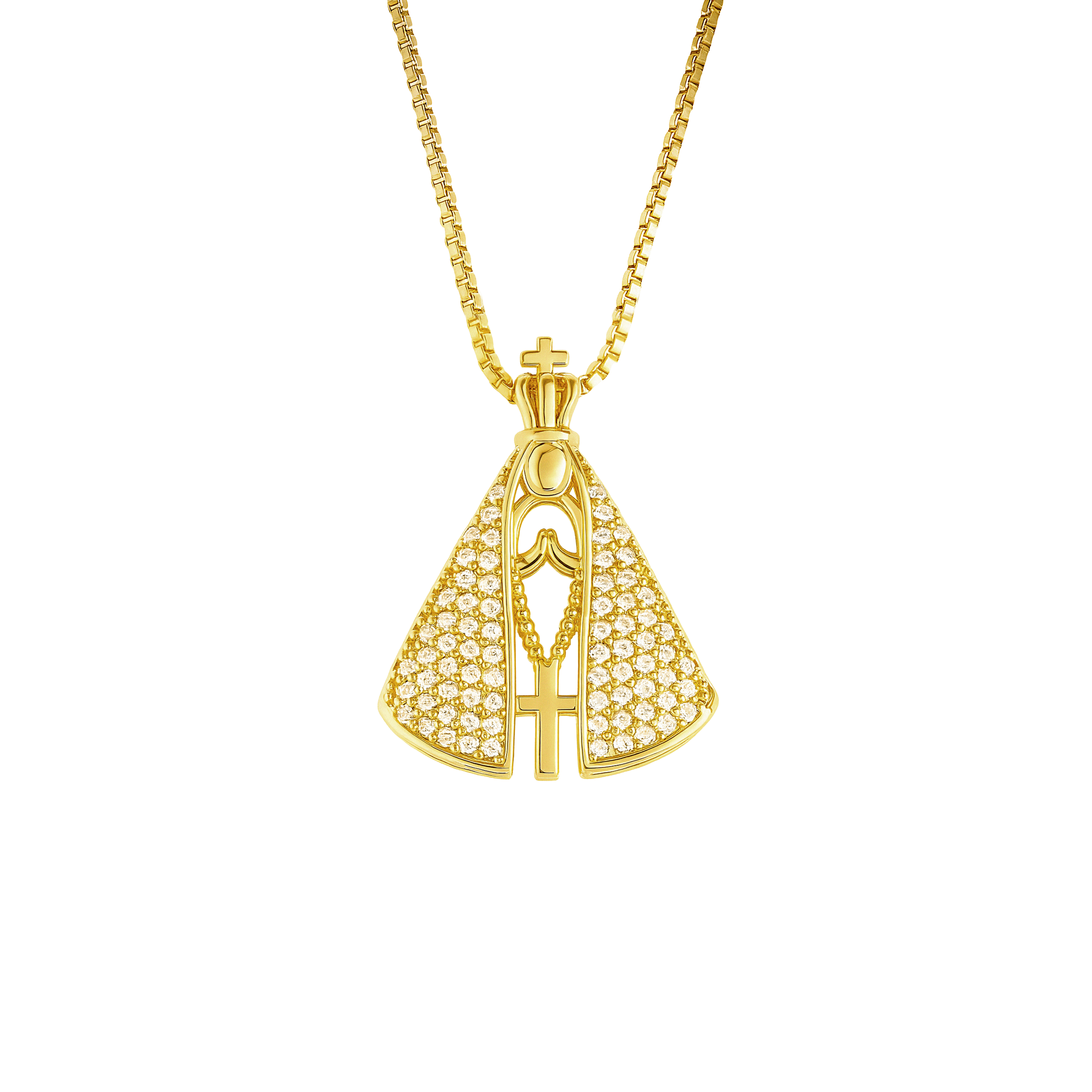 Colar Pingente Nossa Senhora Luxo Dupla Face Banhado a Ouro 24k