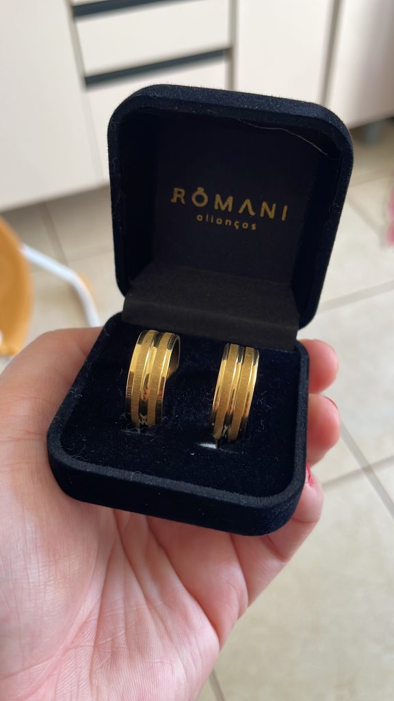 Recomendo de olhos fechados! Vocês podem garantir a de vocês, é amor á primeira vista!! São lindas demais! Eu e meu noivo vamos se casar, e escolhemos nossas alianças da Romani, estamos super satisfeitos!! Obrigada equipe, por serem tão atenciosos e por trabalharem com alianças tão lindas! 😍❤️❤️
