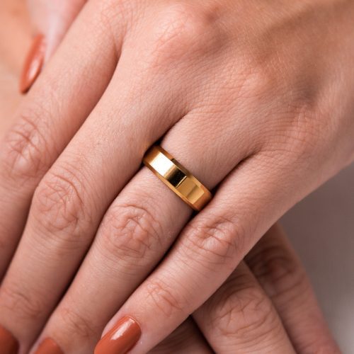 Par de Alianças Banhada Ouro 24k Chanfrada 6mm