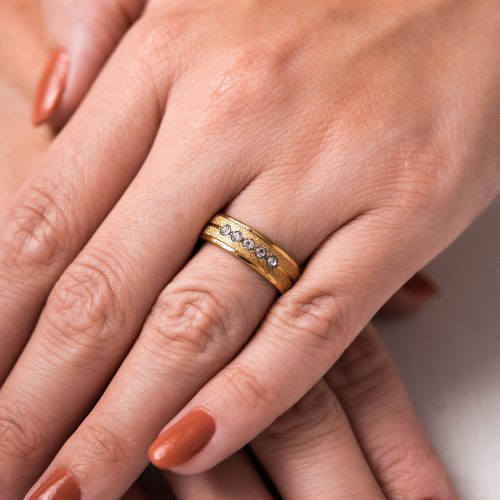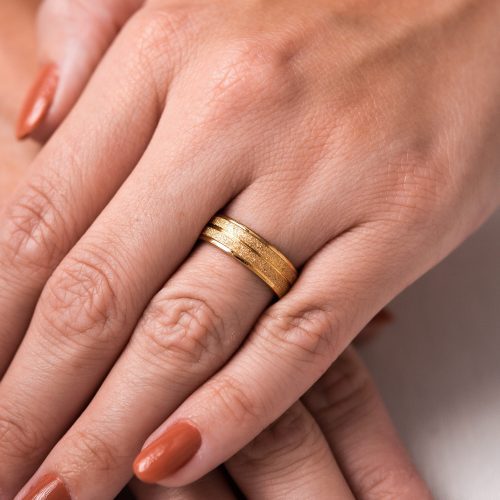 - Aliança de aço hipoalergênico banhada por finas camadas de ouro