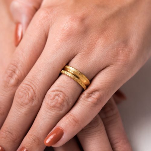 - Aliança de aço hipoalergênico banhada por finas camadas de ouro