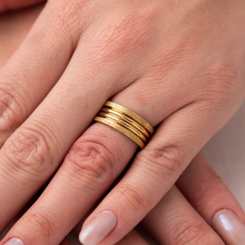 - Aliança de aço hipoalergênico banhada por finas camadas de ouro