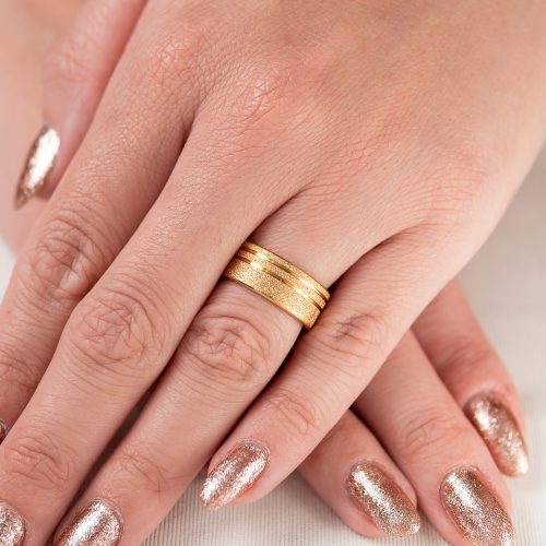 - Aliança de aço hipoalergênico banhada por finas camadas de ouro