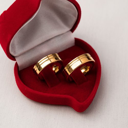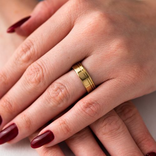 - Aliança de aço hipoalergênico banhada por finas camadas de ouro