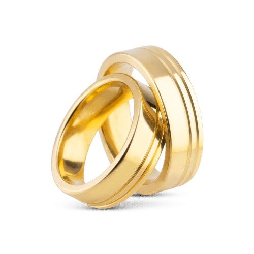 - Aliança de aço hipoalergênico banhada por finas camadas de ouro