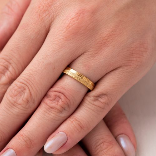 - Aliança de aço hipoalergênico banhada por finas camadas de ouro