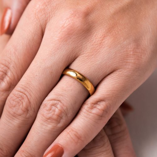 - Aliança de aço hipoalergênico banhada por finas camadas de ouro