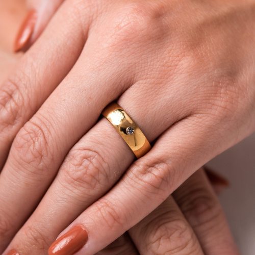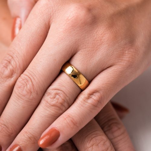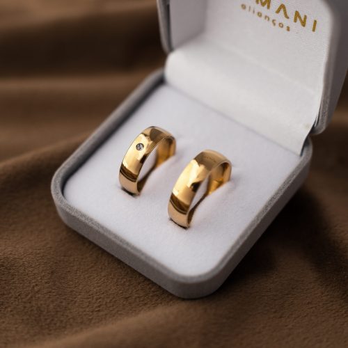- Aliança de aço hipoalergênico banhada por finas camadas de ouro