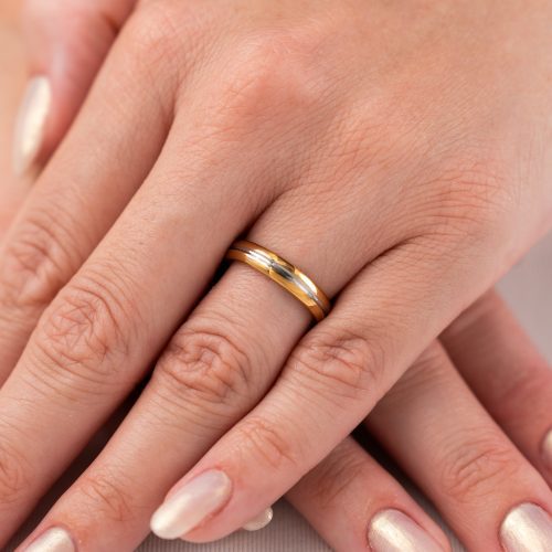 - Aliança de aço hipoalergênico banhada por finas camadas de ouro