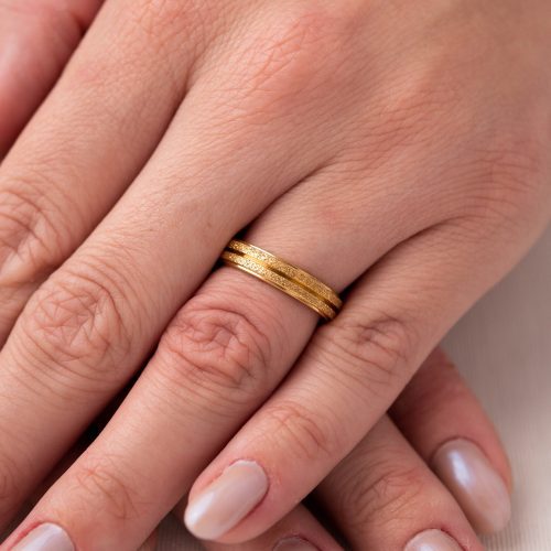 - Aliança de aço hipoalergênico banhada por finas camadas de ouro