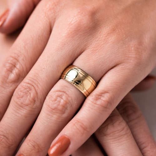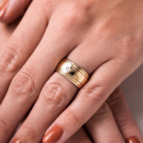 Par de Alianças de Moeda 18k Frise 10mm com Zircônia