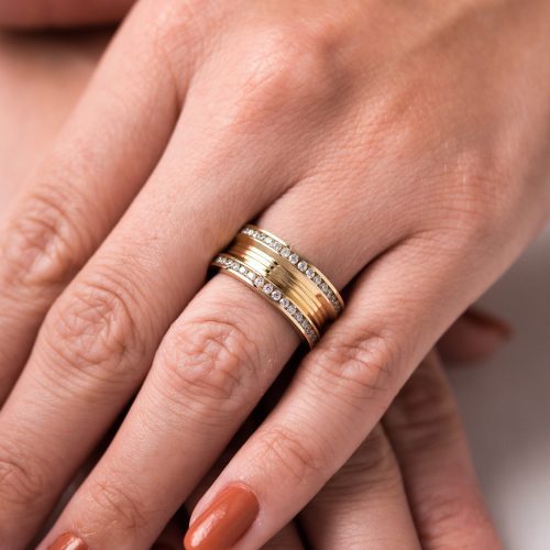 Par de Alianças de Moeda 18k Viena 9mm com Zircônia